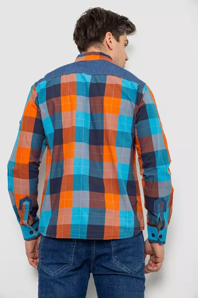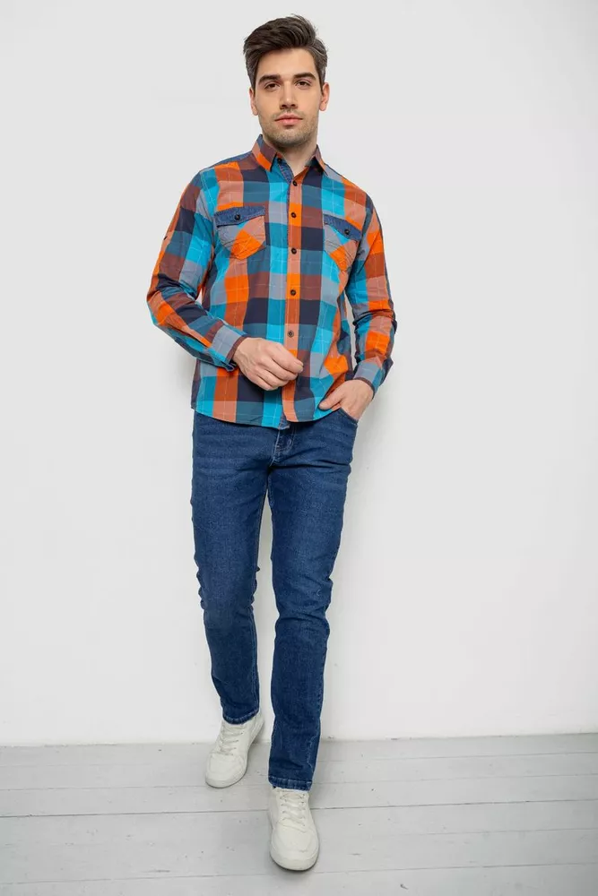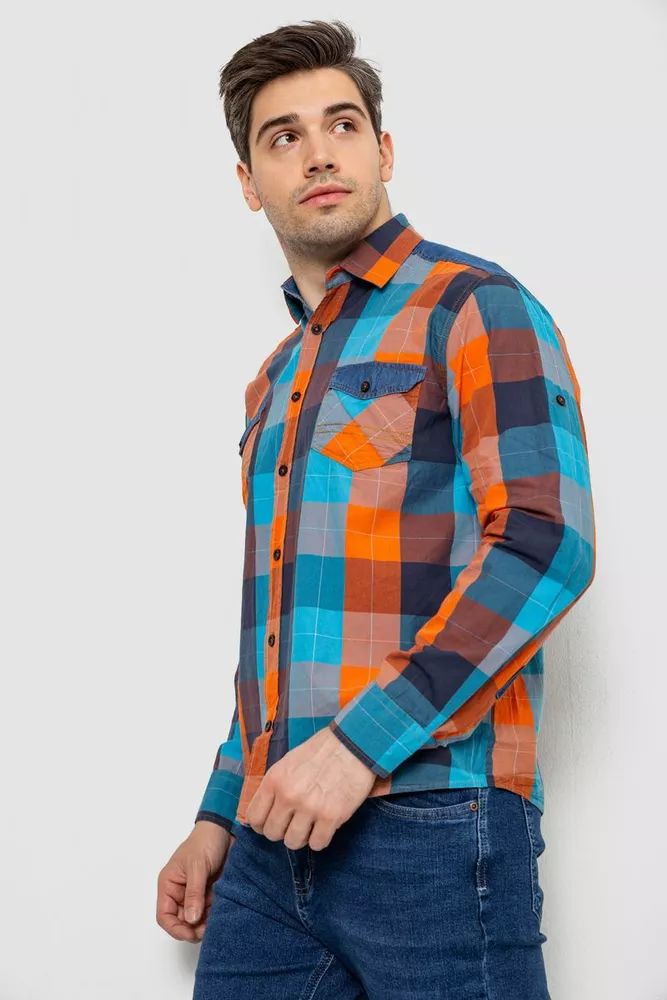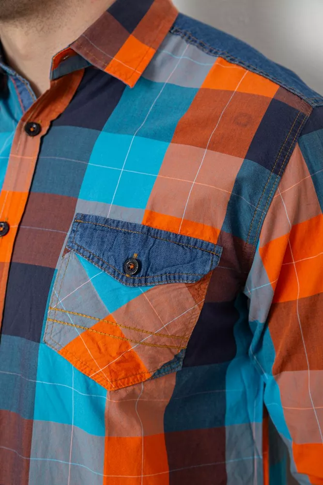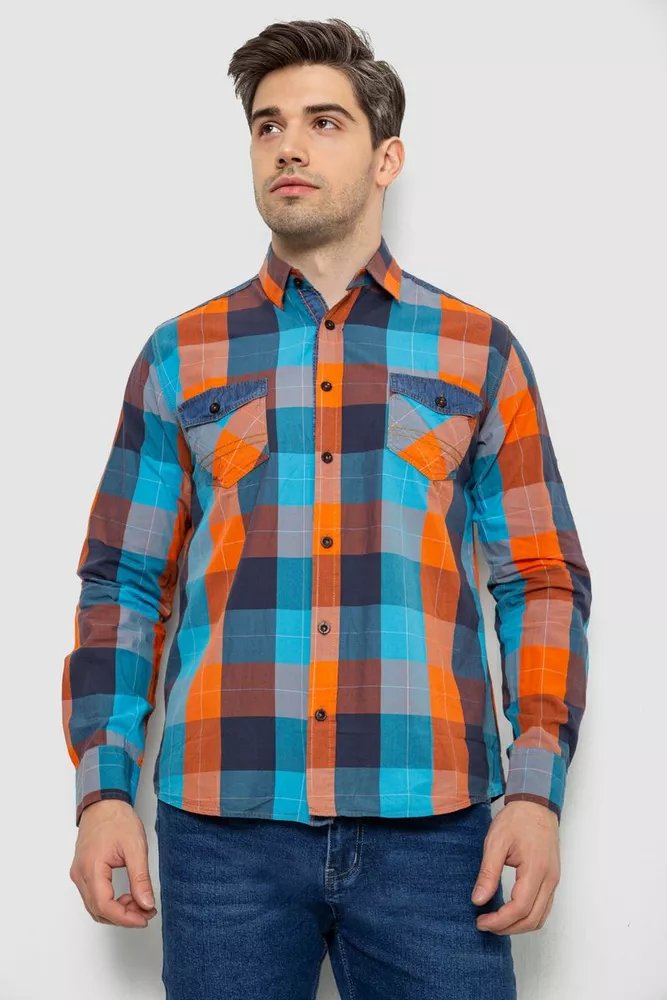 Рубашка мужская в клеточку -уценка, цвет оранжевый, 214R0743-U-14