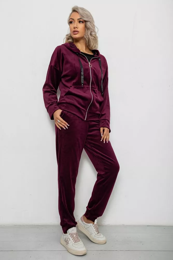 Спортивный костюм женский велюровый, цвет сливовый, 257R4119