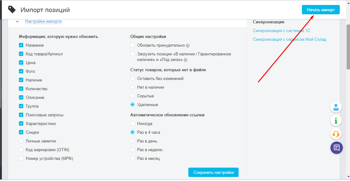 Після цього вся структура категорій та товари вивантажаться на Ваш сайт. (Вивантаження фотографій відбувається із запізненням і може зайняти 1-2 години). Таким чином встановивши налаштування як на скріні Ви отримаєте автоматичне вивантаження, а це означає, що продані товари будуть видалятися з Вашого сайту, а новинки з'являтимуться. Оновлення відбуватиметься кожні 4 години.