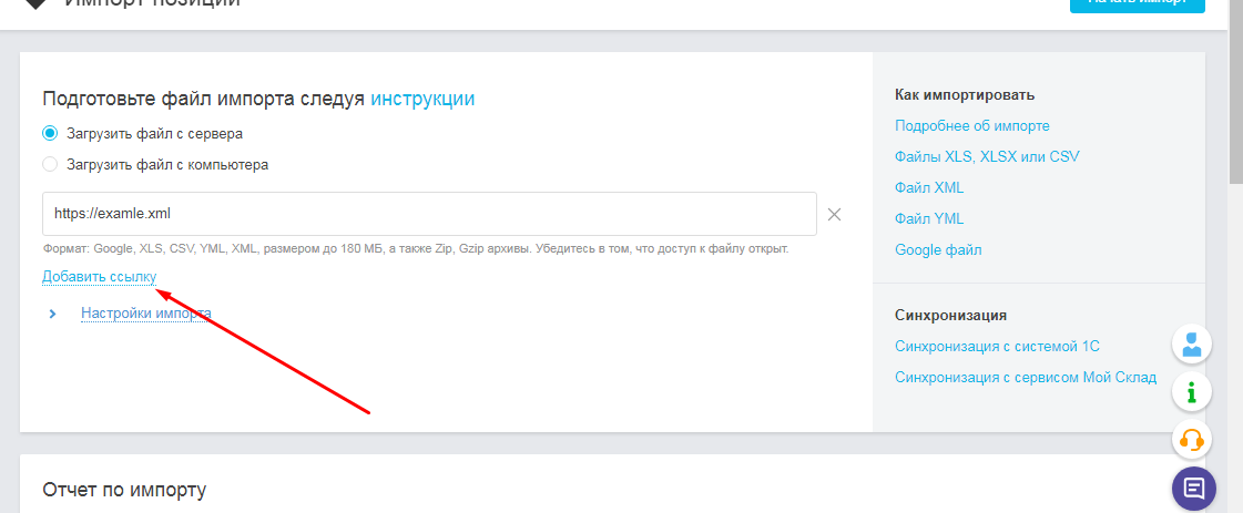 Якщо у Вашому магазині вже розміщені товари та налаштовано автовивантаження, то Вам потрібно натиснути "Додати посилання" в меню імпорту: