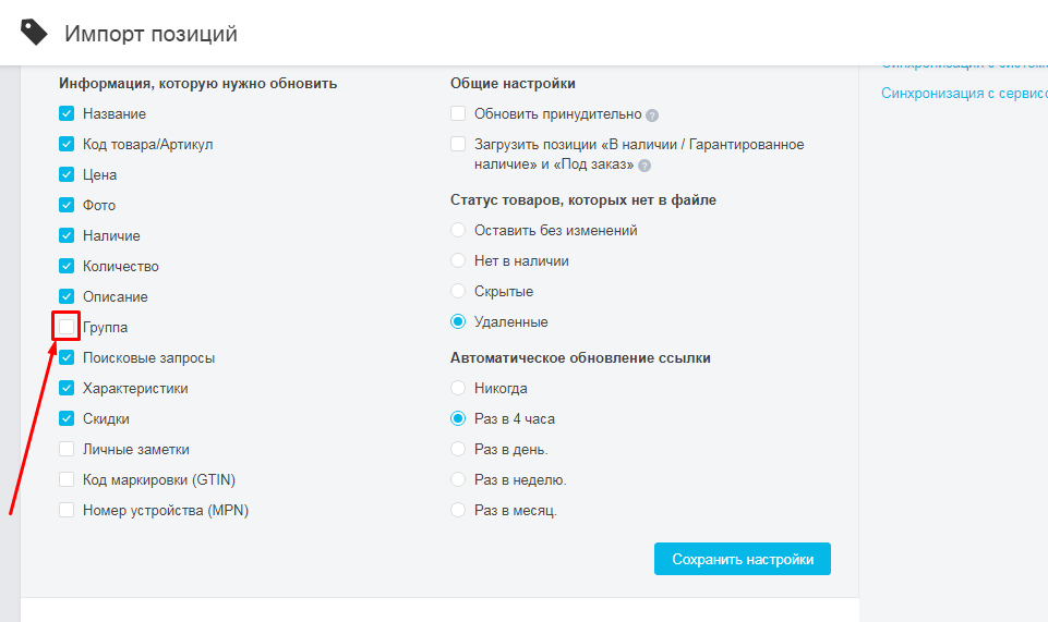 Важливо! За замовчуванням будуть створені категорії з усіх імпортних файлів, які Ви використовуєте. Якщо Ви хочете, щоб не було двох однойменних або схожих за змістом категорій, то після імпорту потрібно вручну перенести товари в потрібні категорії та зняти галочку "Групи" у налаштуваннях імпорту: