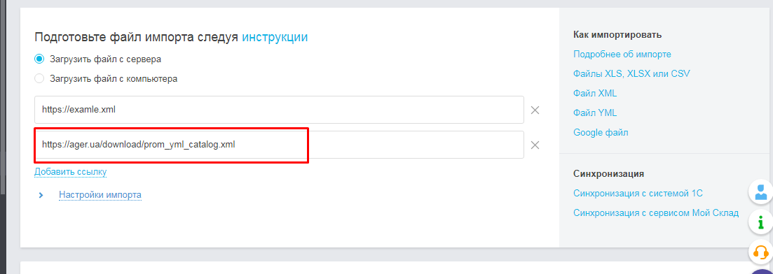 Після того як ВИ вибрали для себе відповідне посилання, її потрібно скопіювати та вставити у відповідне поле в особистому кабінеті на ПРОМ та натиснути "Налаштування імпорту":